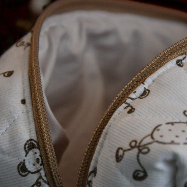 Sa fermeture zippée permet un accès rapide et sécurisé à son contenu, tandis que son tissu extérieur doux (en coton, gaze de coton ou toile selon le modèle) offre un rendu aussi chic que pratique.