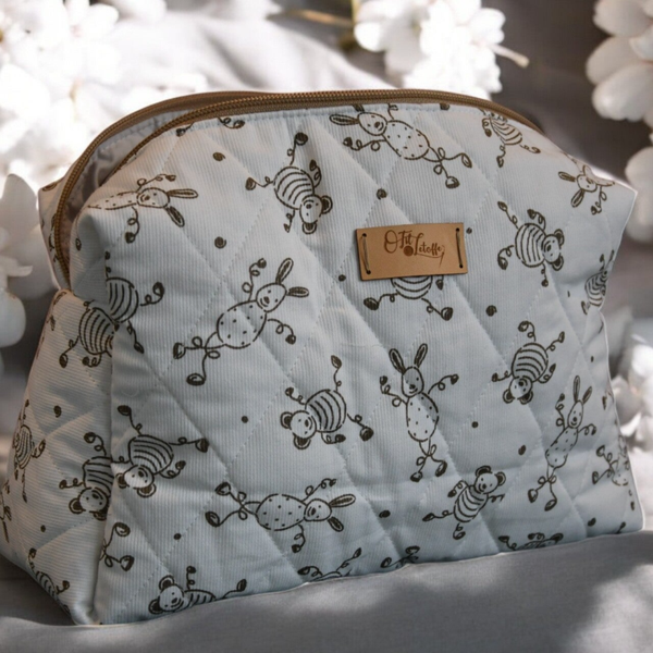 Disponible dans des coloris tendres et des imprimés délicats, cette trousse est également une idée de cadeau de naissance parfaite, à la fois utile et pleine de charme.